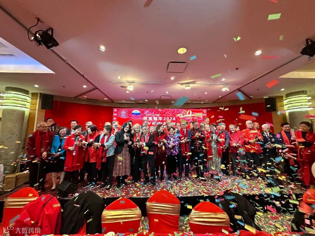 粤商总会代表作为荣誉主席单位,林少毅会长,庄晓爚执行会长兼秘书长,林泽军副会长和粤商会会员单位代表吴虹儀,卓翔伟,Michelle Li 和蓝少枫等出席了此次庆典活动。华埠春节庆会组委会在千人宴上对粤商总会予以表彰,充分肯定粤商总会对BC省多元文化社会所作出的杰出贡献。