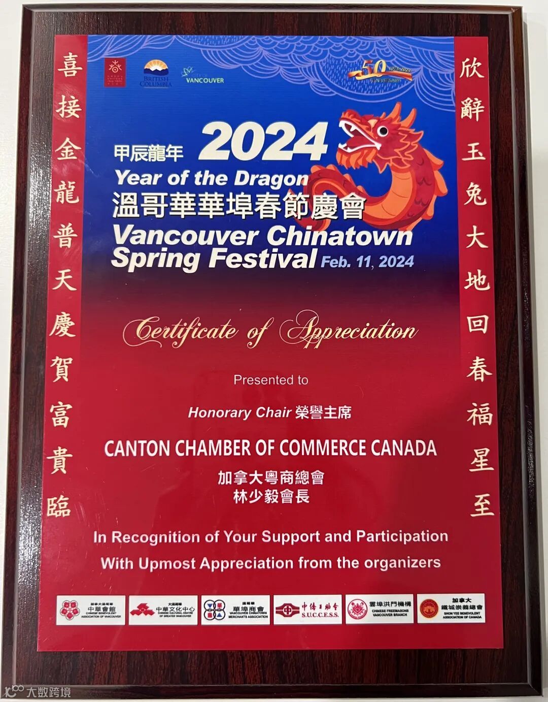 BC省省督奥斯汀(Janet Austin)还特别颁令,将2月10日至3月10日定为BC省“农历新年及春节庆祝月”,并将2月11日定为BC省“温哥华华埠春节庆会50周年纪念日”。