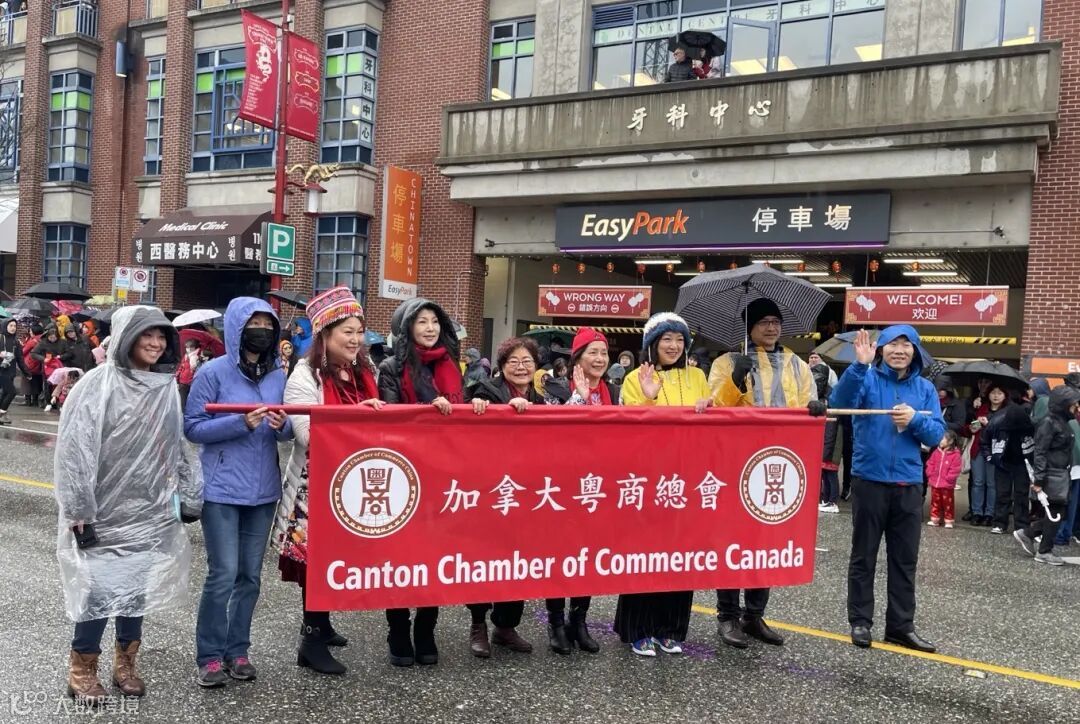 2024年2月11日(年初二),粤商总会作为温哥华华埠50周年春节庆会荣誉主席单位参加了温哥华华埠50周年金禧新春大游行新春大游行活动。三級政府政要、各国总领馆和社區代表等数十人共同在千禧門步。风雨无阻參與今年 50 周年大遊行活動显得特別有意義。