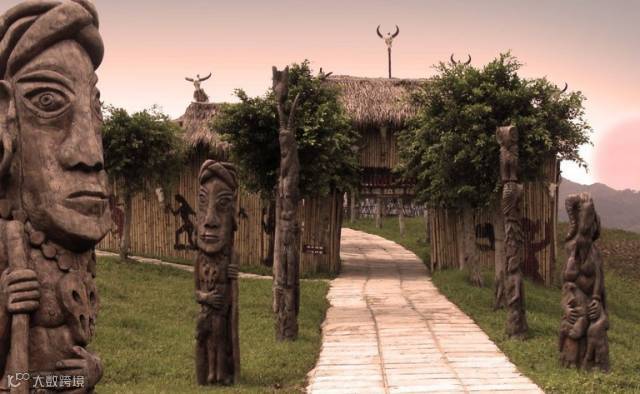 重现了羊角山远古部落城堡风貌,展现了岭南原始森林的远古变迁与欢乐和谐。
