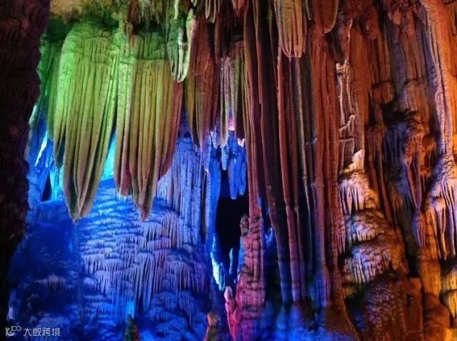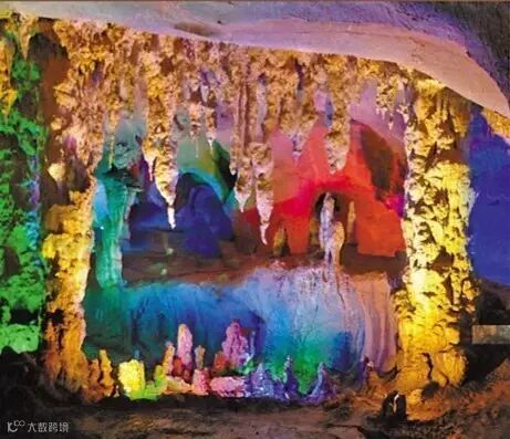 这里是著名的亚热带喀斯特地貌的典型巨型天然石灰岩溶洞。神秘瑰丽的钟乳石在五彩灯光映射着,犹如到来一个虚幻的世界。