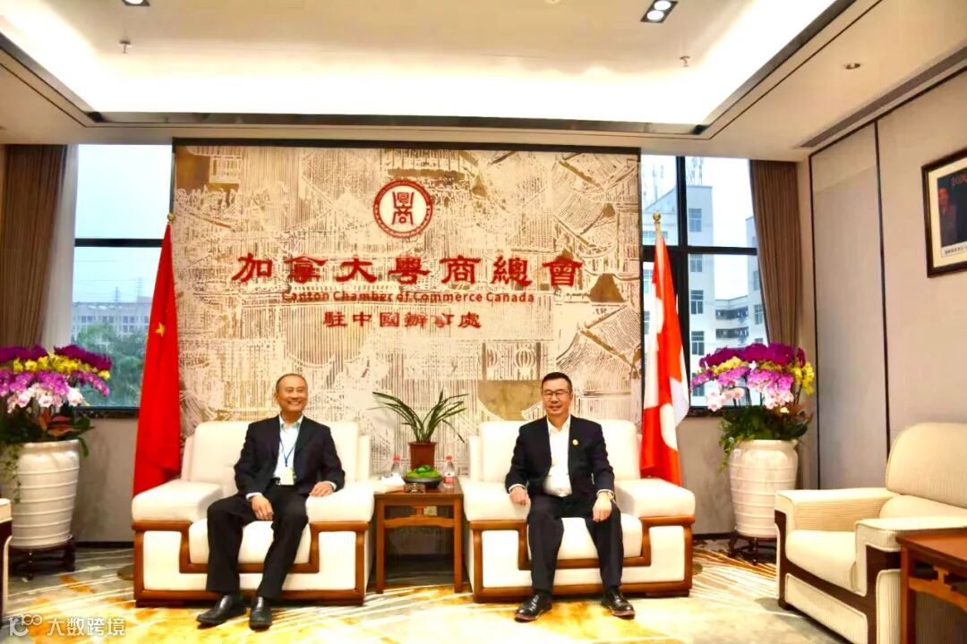 双方在办事处座谈交流,畅叙乡情,围绕会务互鉴、投资项目分享、加拿大潮属社团总会首届理事会就职典礼等话题充分交流。