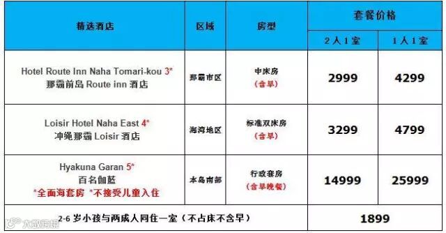 •4晚冲绳自选星级酒店住宿及早餐;