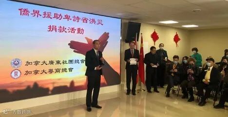 12月3日,加拿大广东社团总会以及加拿大粤商会邀请了多个侨团代表、各级政府官员及红十字会代表出席捐款仪式。卑诗省务贸易厅长周炯华、新民主党省议员姚君宪、自由党省议员李耀华、自由党国会议员缪宗晏的代表以及前保守党国会议员黄陈小萍均出席活动。