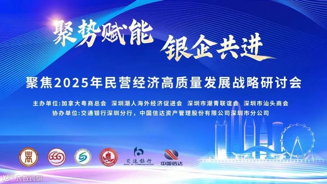 2025年3月10日,由加拿大粤商总会、深圳市汕头商会、深圳潮人海外经济促进会、深圳市潮青联谊会联合主办,交通银行股份有限公司深圳分行、中国信达资产管理股份有限公司深圳分公司协办的“聚势赋能、银企共进——聚焦2025年民营经济高质量发展战略研讨会”在交通银行大厦隆重举行。