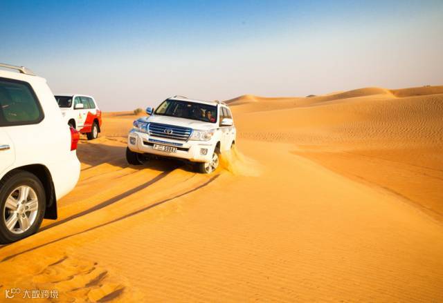 进入金色的沙漠,乘坐4WD越野吉普车进行冒险家游戏—冲沙 。