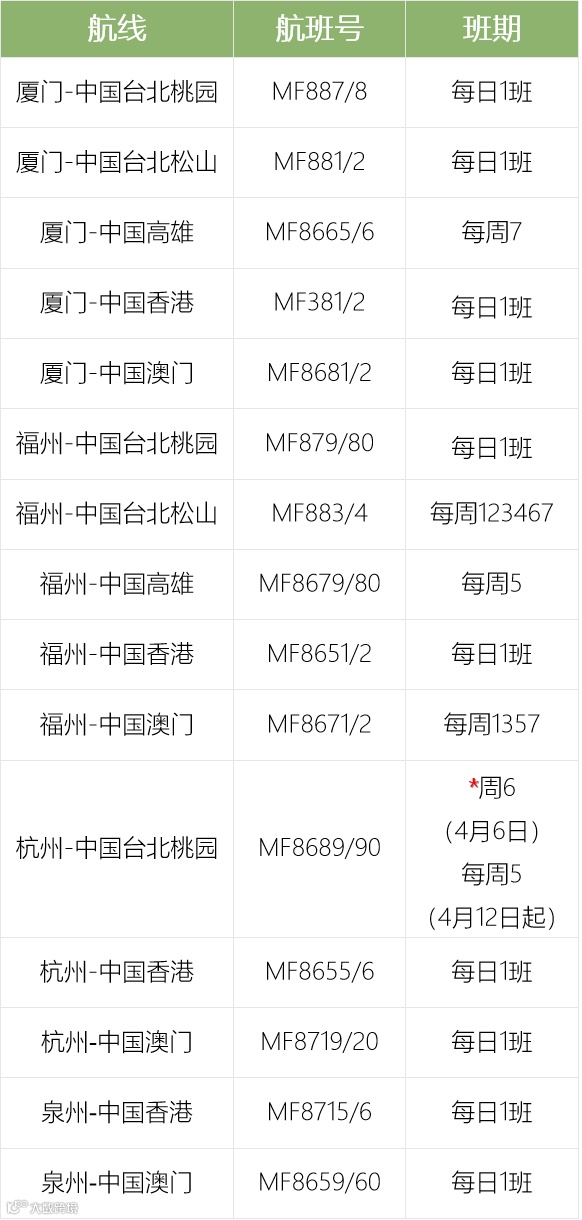 3 月 31 日起,厦航新航季正式启航,2024 年 4 月国际及地区航班信息: