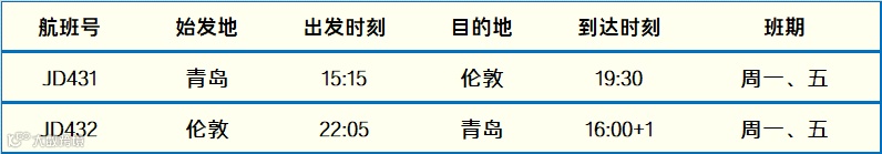 青岛✈伦敦在新航季新增周三班期,具体航班时刻敬请期待!