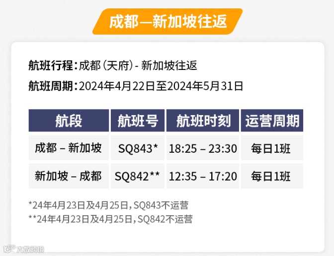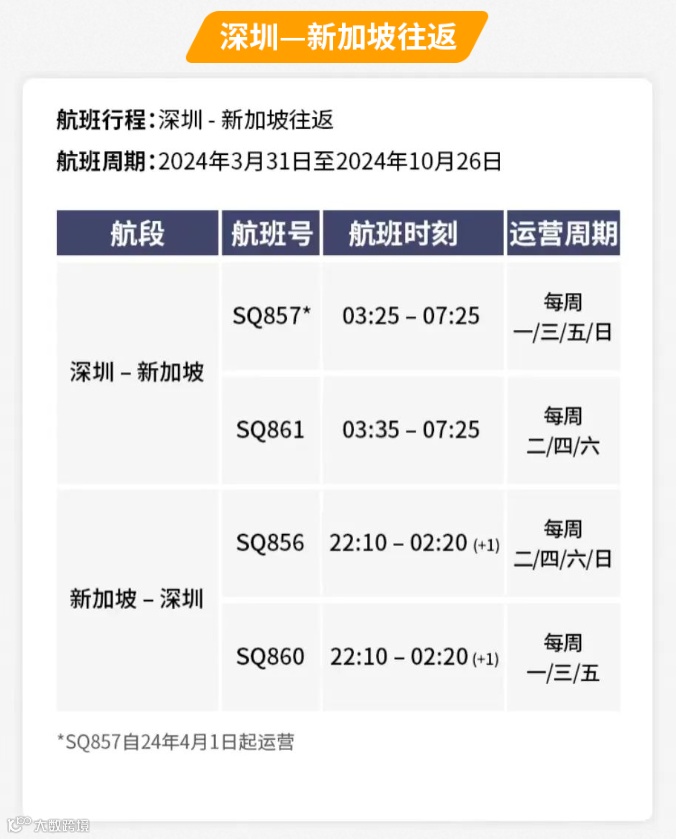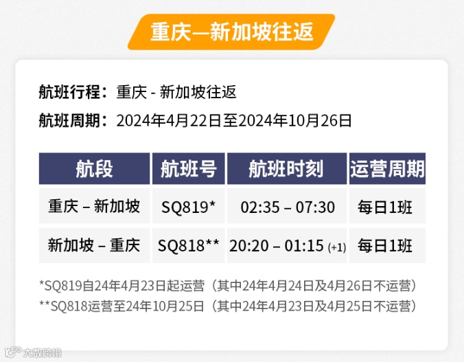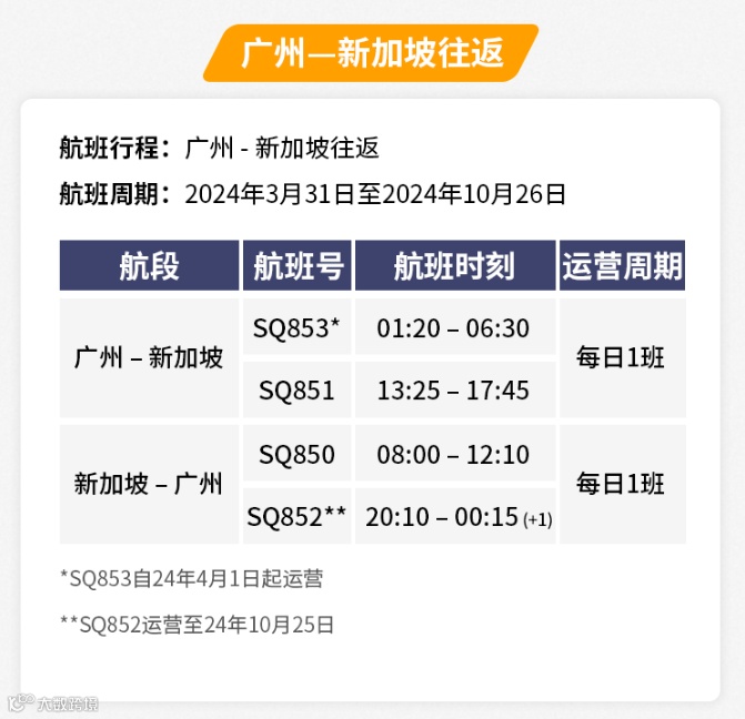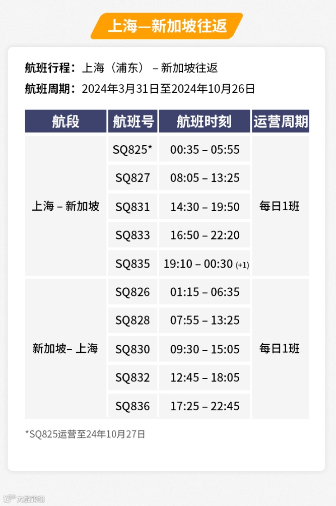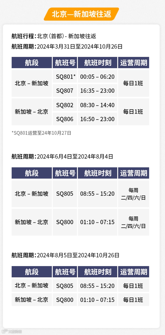 新加坡航空在 2024 年夏秋航季(24 年 3 月 31 日-24 年 10 月 26 日,含首尾 2 日),将运营以下中国内地往返新加坡的客运航班。