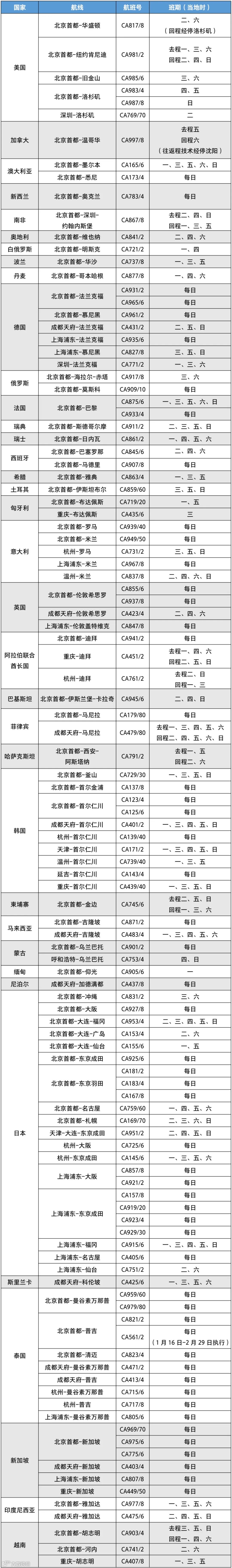 新航季,国航的国际及地区航班日均计划执行 201 班次。