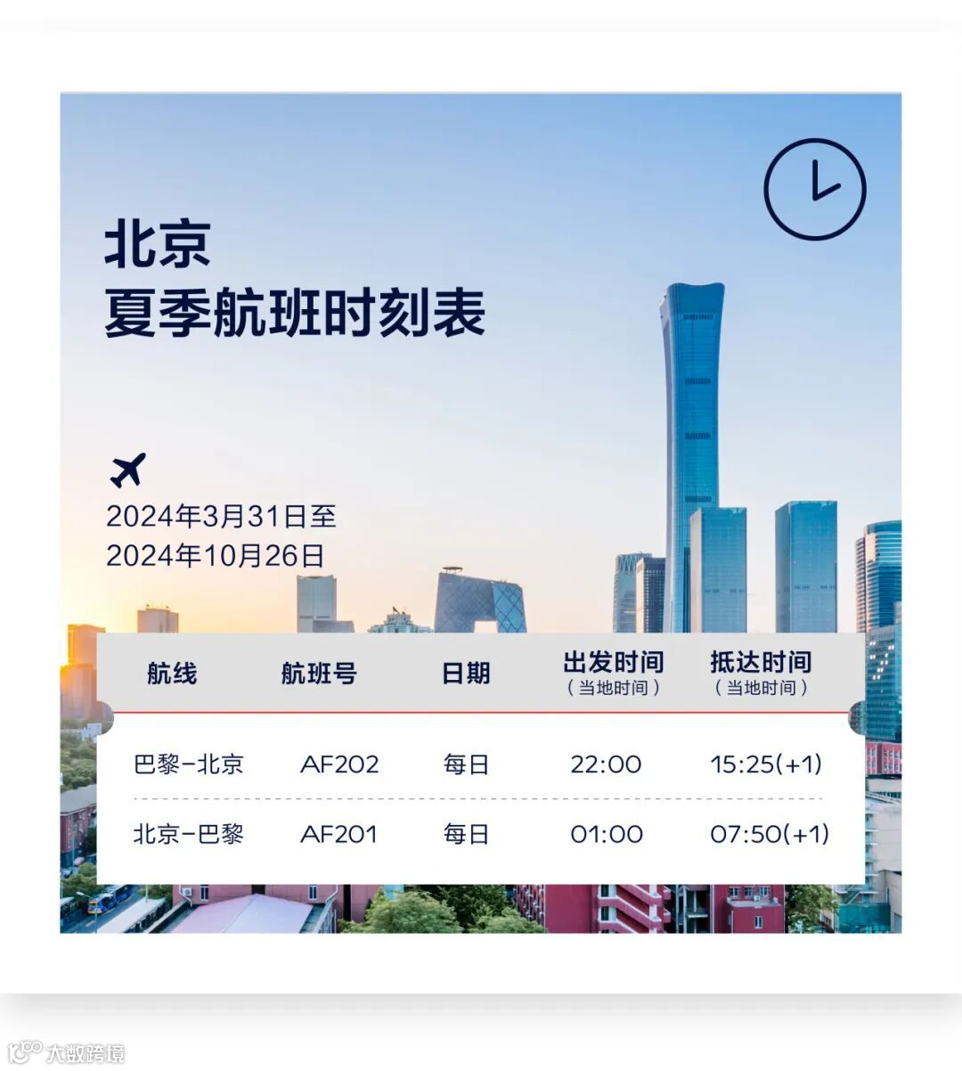 2024 年 4 月 27 日起,国航北京首都✈法兰克福航线增班,航班号为 CA957/8,班期一、三、六,由波音 B777 执飞。