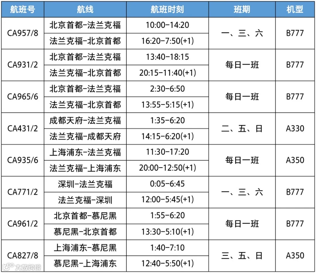 上海✈法兰克福往返航班即将增至每日两班;北京✈慕尼黑将由原来的每周三班加密至每日航班。