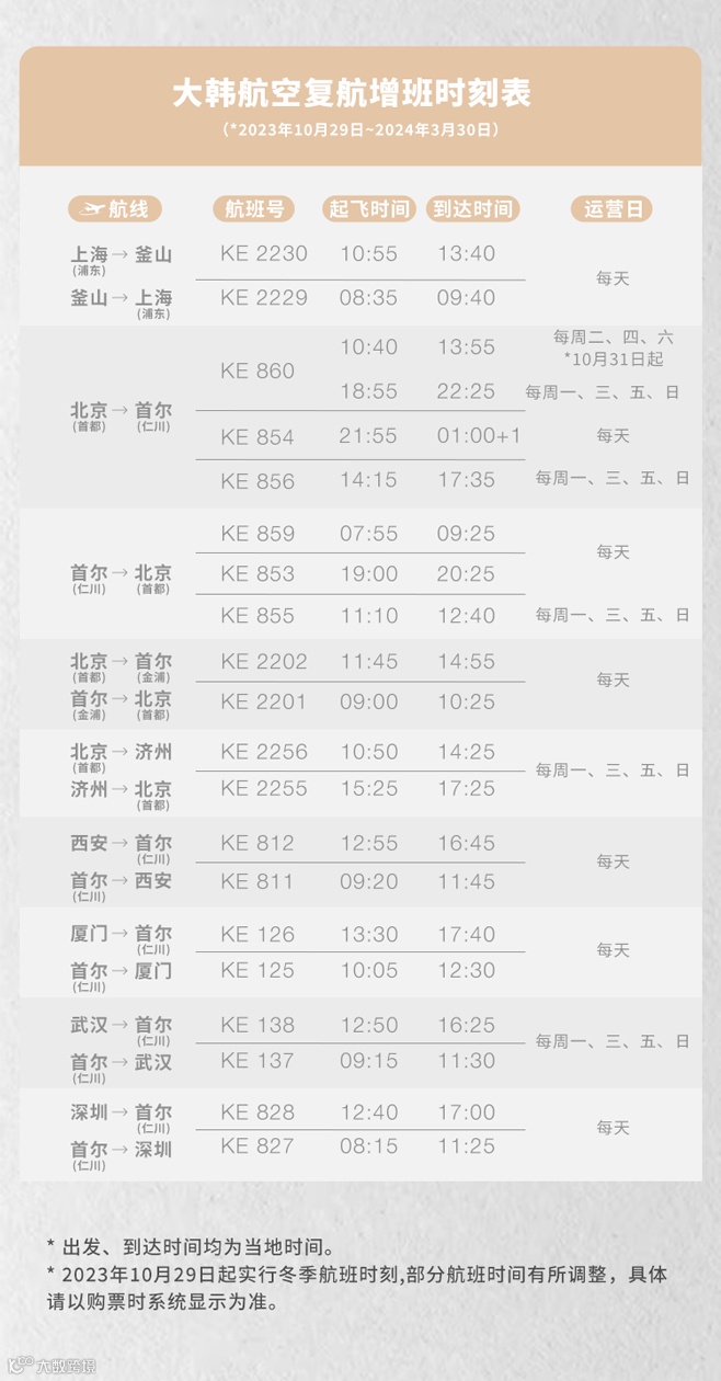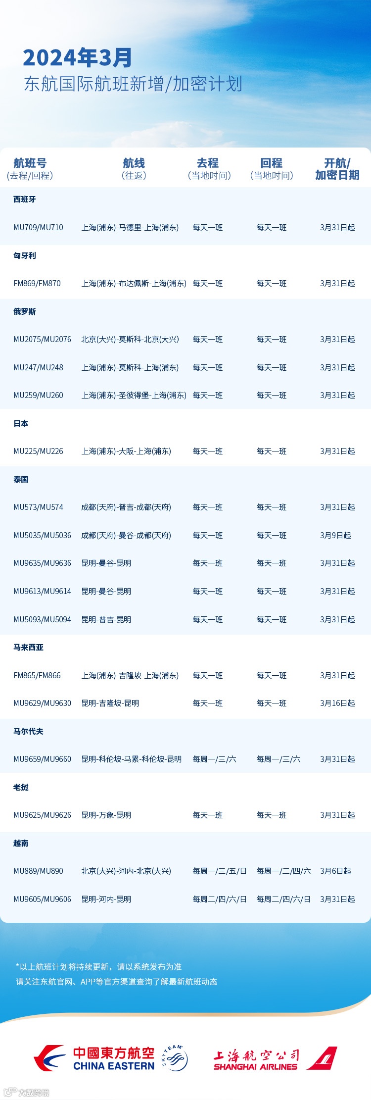 注:以上航班均为当地时间,如遇航班变动,请以实际查询为准。