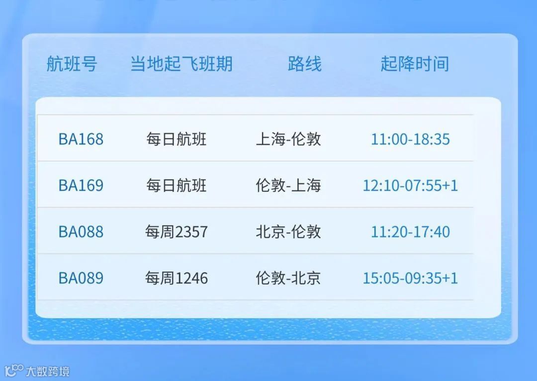 *以上时刻于2024年3月31日开始运营,并可能根据实际运营和相关政府部门批复而随时做出调整。请在BA官网查看最新信息。