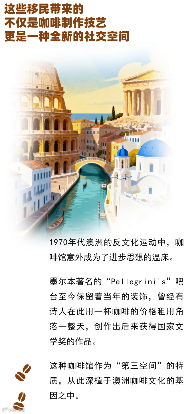真正的转折发生在二战后的欧洲移民潮——来自意大利、希腊和马耳他的移民,带着家乡的咖啡机、烘焙技术和咖啡馆传统,在墨尔本的莱贡街、悉尼的国王十字区播下了咖啡文化的种子。