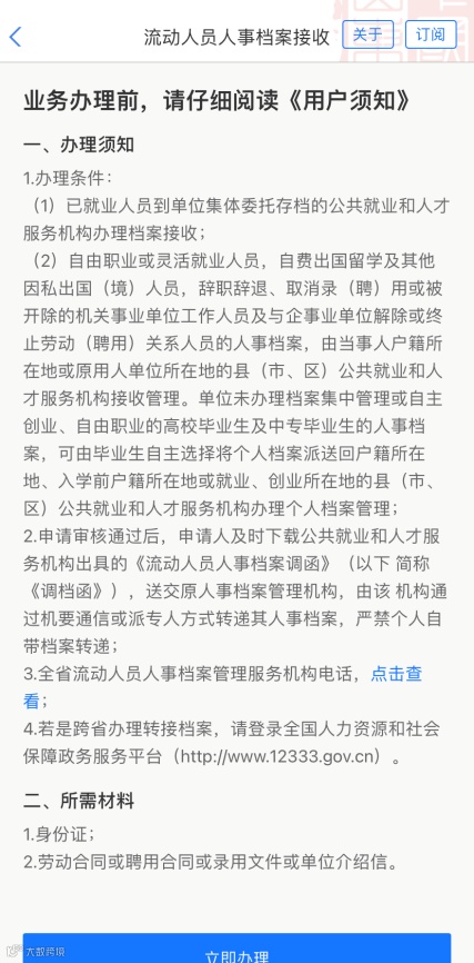 指尖办理档案转移