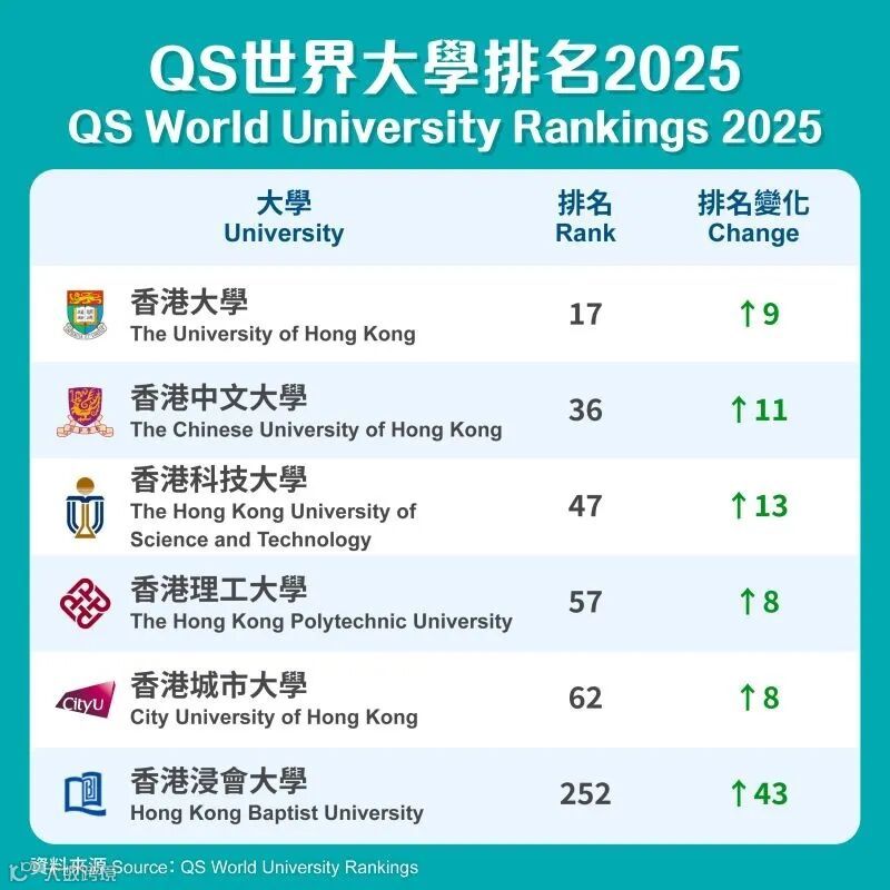 在2025年的QS世界大学排名中,中国香港有5所高校进入全球前100名,(中国内地亦有5所高校进入全球前100名),以世界排名与申请难度划分,香港高校大致可以分为三个梯队。
