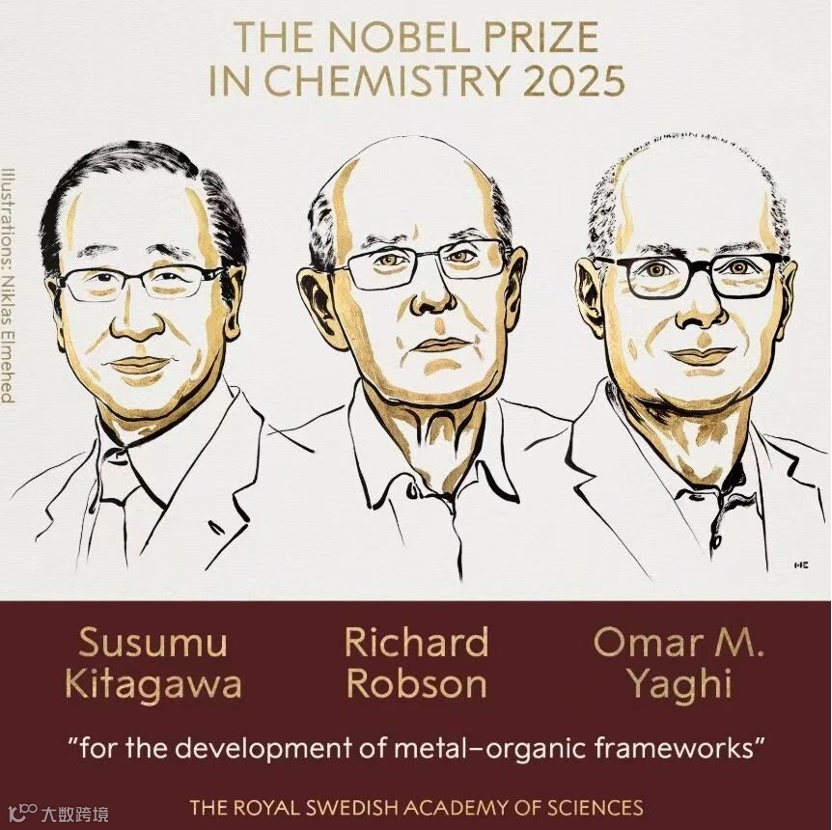 瑞典皇家科学院当地时间10月8日宣布,将2025年诺贝尔化学奖授予北川进 、理查德·罗布森和奥马尔·M·亚吉,以表彰他们金属有机骨架领域的开创性贡献。
