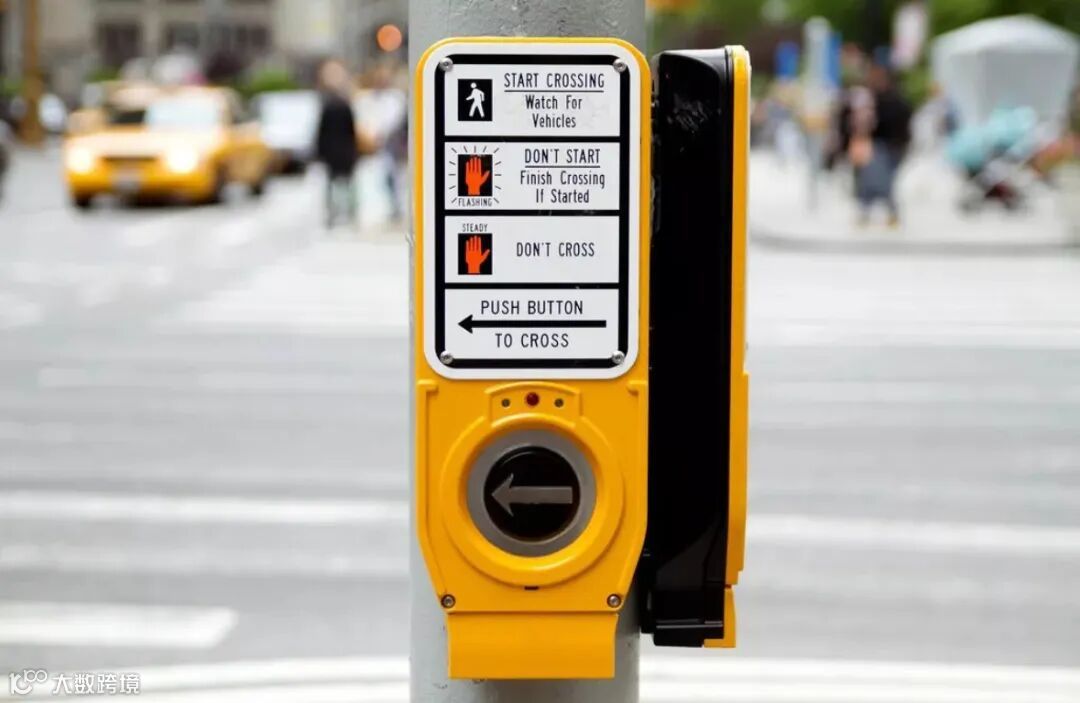 在美国的街头,只要有人行道的红绿灯都会在附近的信号灯杆上配备行人按钮。一方面可以缩短行人等待时间,更好规划道路交通(小编是不会承认自己曾经等了十多分钟怒斥交通灯坏了时发现是自己没按按钮的行径的),有的按钮上方还会配备语音播报,为残障人士的出行增添更多保障。