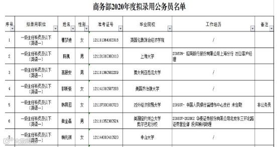 但从近年来各单位公布的录取名单来看,会发现有不少毕业于国外名校的报考者。以商务部公布的2020年度拟录用公务员名单可以看出,与以往人们印象中公务员“根正苗红”的国内背景出身不同,这份20个人的录用名单中来自国外院校有8人,占40%。