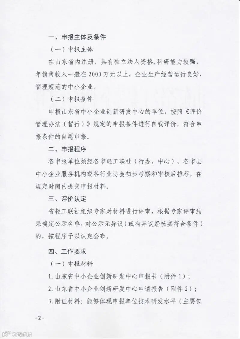 项目申报|关于组织开展山东省中小企业创新研发中心申报工作的通知
