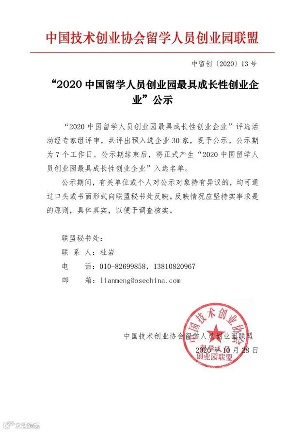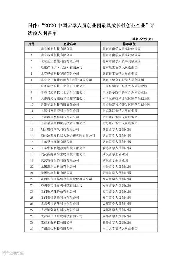 导读:园区2家企业荣获“2020中国留学人员创业园最具成长性创业企业”(全国30家)(中留