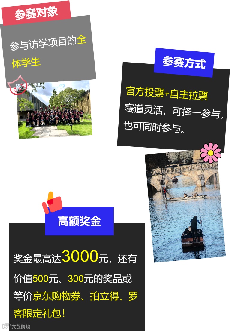 可以同时参与两种评选方式,期待同学们有温度、有内容的访学照片、视频~