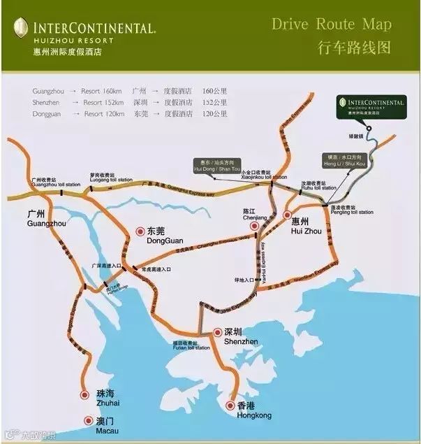 酒店交通指引:可以2个小时开车到酒店的城市,除了广州(2小时.180km),还有东莞(1.5小时.120km)和深圳(2小时.150km)等,都需要上广惠高速,在“蓬陵”收费站下右转跟着一路的酒店指引,20km路程就到达酒店。
