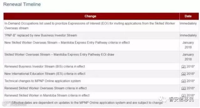 2017年11月15日,曼省政府教育与培训厅(主管移民局)厅长Ian Wishart宣布与加拿大联邦政府达成协议,实施曼省移民新政,扩大省提名名额,加速处理移民申请,加强雇主移民类别, 吸引更多技术工人补充劳动力市场。