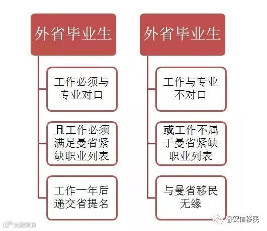 7. 【外省毕业找工作学生特别注意】在外省毕业的学生,即使拿到三年工签,未找到与本专业对口,并且未在曼省紧缺职业列表上的工作,无缘曼省。