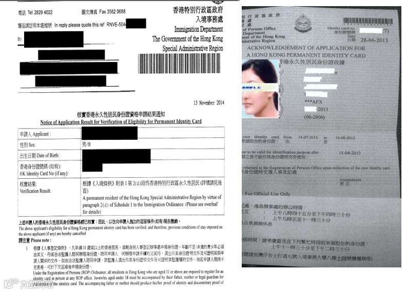 申请香港永久性居民身份证