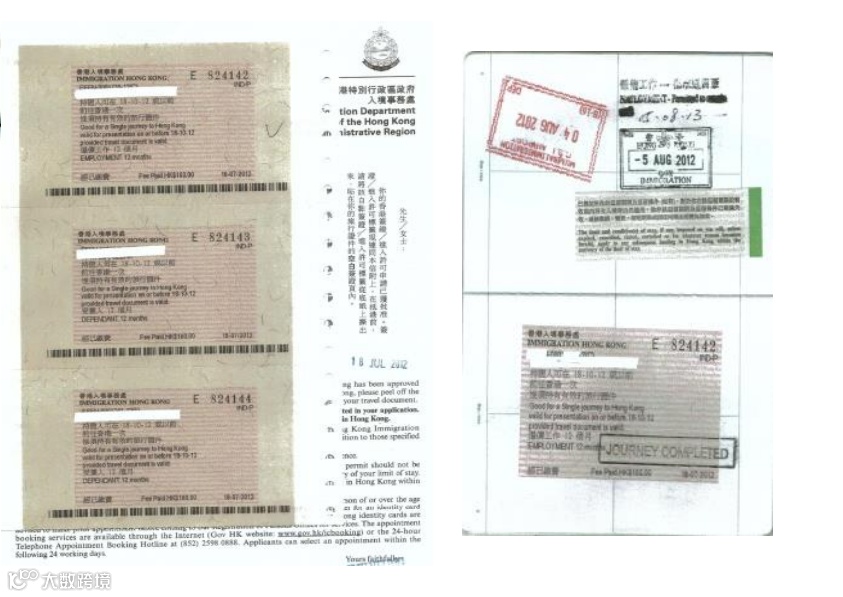 签证标签及已经生效的签证