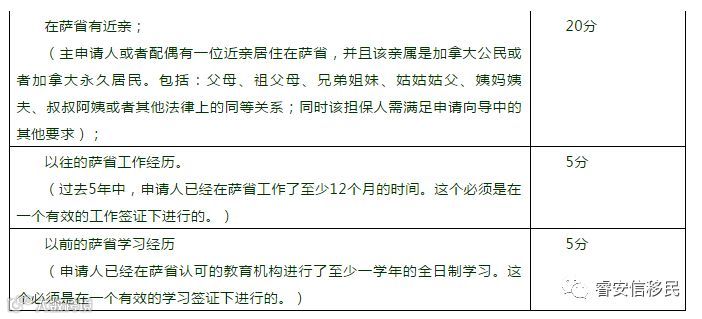 1、萨省技术移民评分标准中,总分100分,至少需要获得60分;