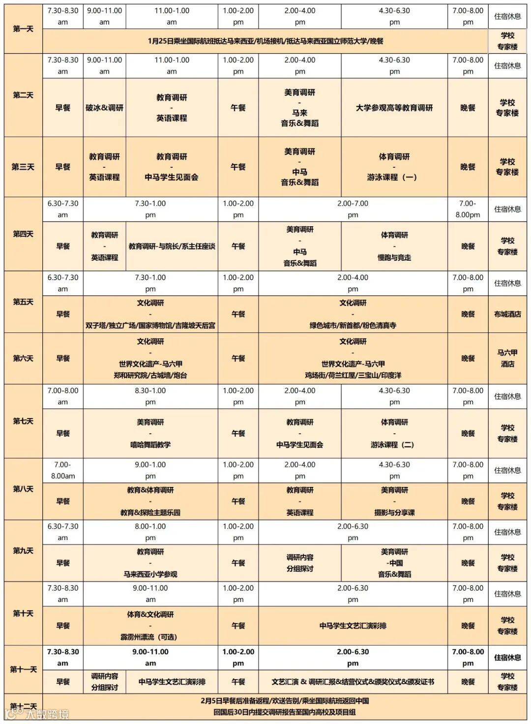 项目组委会负责调研期间的一日三餐(包括吉隆坡、马六甲调研期间)。