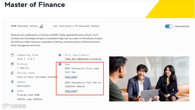 以新南威尔士大学UNSW的两个硕士项目为例: