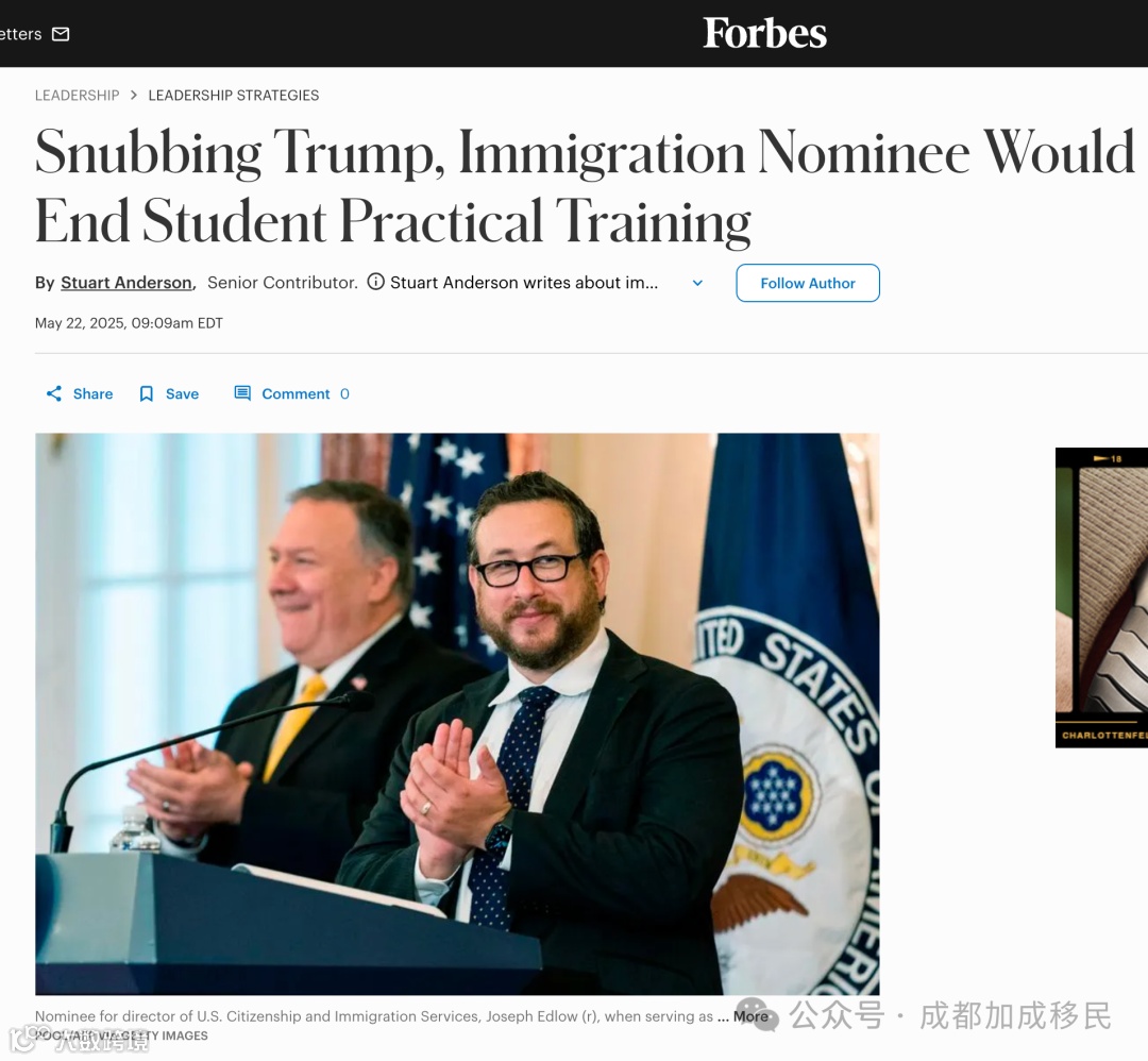 埃德洛在听证会上明确表示,OPT项目“被法律滥用”,并声称其目标是“取消F-1学生在校外的就业授权”。若政策实施,留学生毕业后将无法合法留美工作,必须立即离境或转成其他签证类别(如H-1B),而后者本就面临严苛的抽签制度和名额限制。