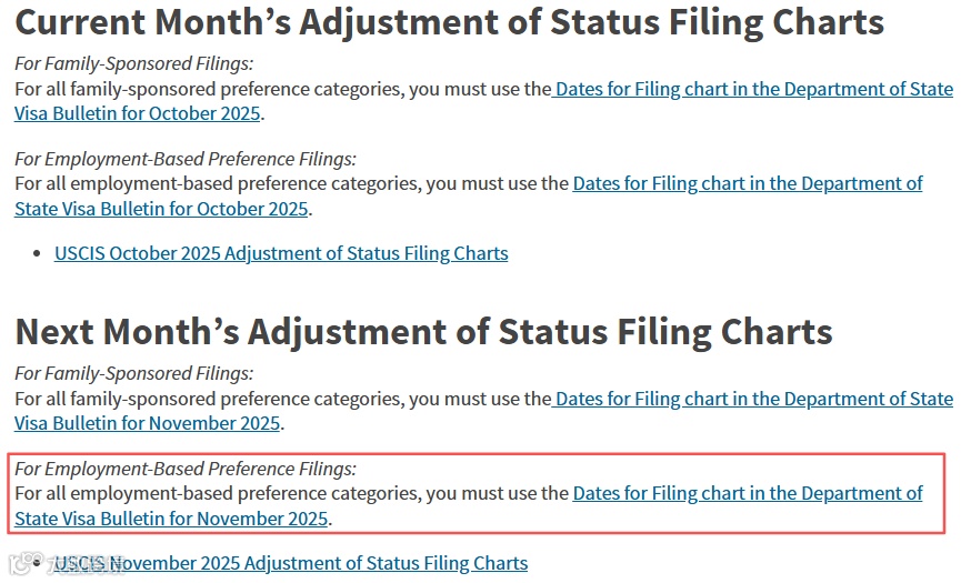 表B开放,且申请人的优先日早于表B所示日期,并满足在美调整身份的其他条件,即可递交I-485,并可同时申请EAD(I-765)与AP(I-131)。