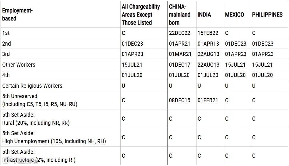 EB-5(新法下三类预留类别:乡村,高失业地区以及基建项目) ,无排期。