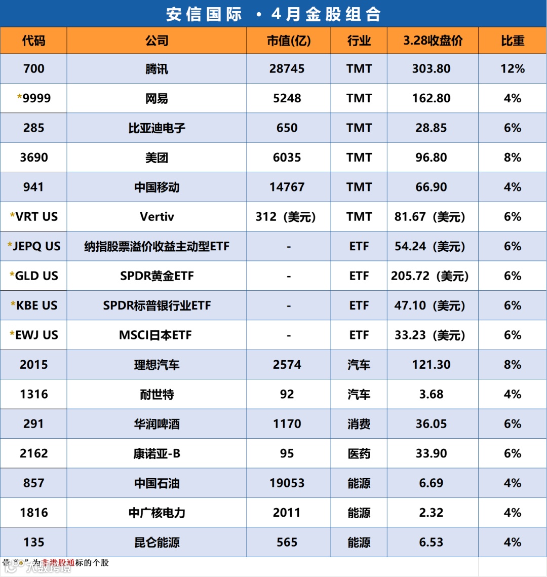 安信国际 | 慧眼识金股(2024年4月组合) 国证国际