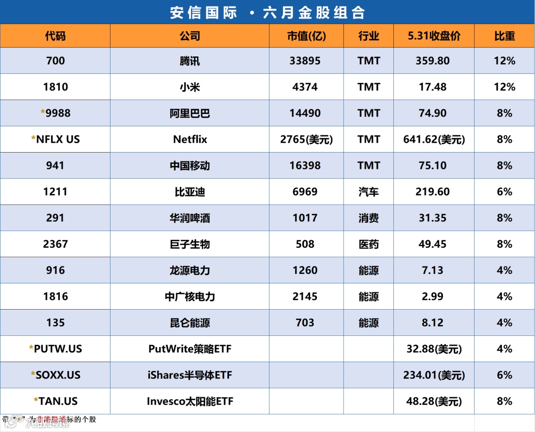 安信国际 | 慧眼识金股(2024年6月组合) 国证国际