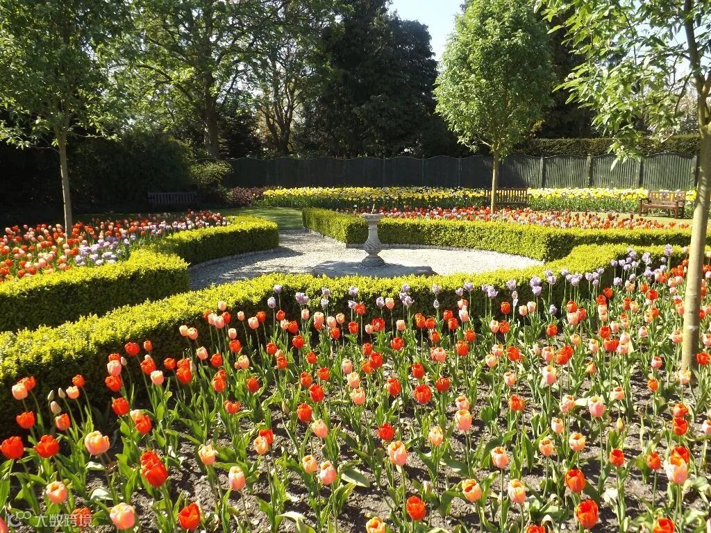 南约克郡的这座花园采用“高维多利亚时代”正式意大利风格布置,对称的花坛,与设计的整体几何形状保持一致。在 4 月,你可在这里欣赏到多达 5,000 株郁金香同时盛开的景象!
