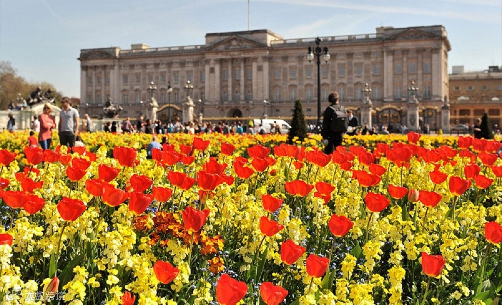 伦敦白金汉宫前种植了5万朵的黄紫罗兰(wallflower)和红色郁金香,以纪念维多利亚女王。搭配上黄紫罗兰的郁金香显得更有层次感了呢~