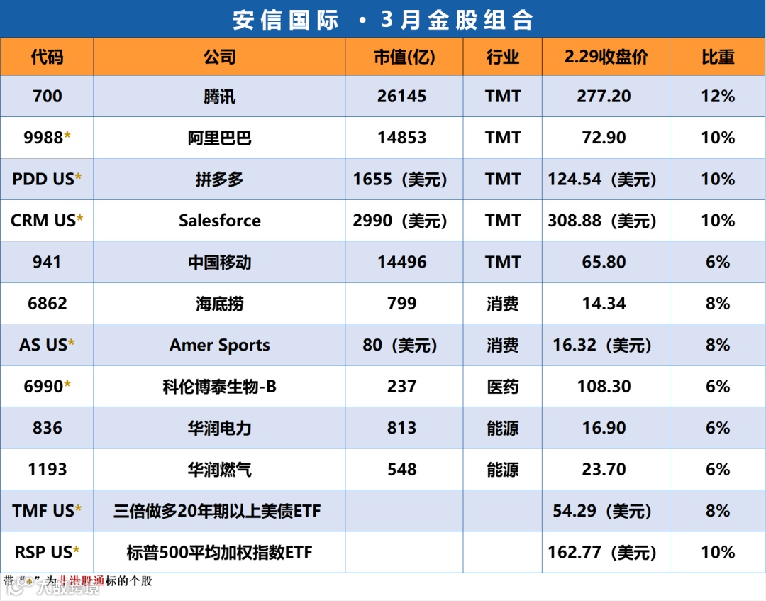 安信国际 | 慧眼识金股(2024年3月组合)