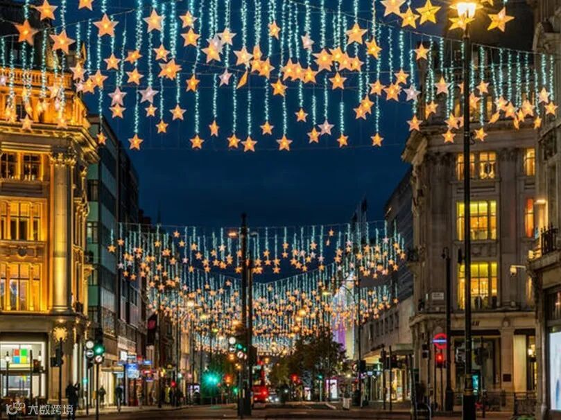 自每年11月初起,英国各大主要街区便陆续点亮圣诞灯火,而到了12月,整个城市将被璀璨的圣诞灯光所覆盖。