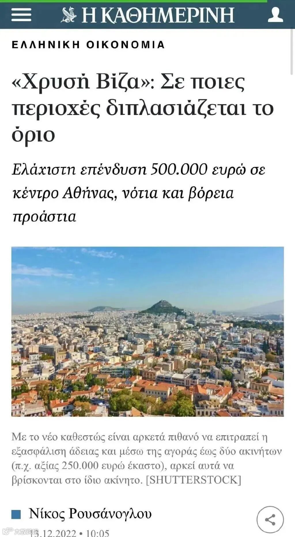 希腊黄金签证新政策暂缓时间定为:2023年5月1日