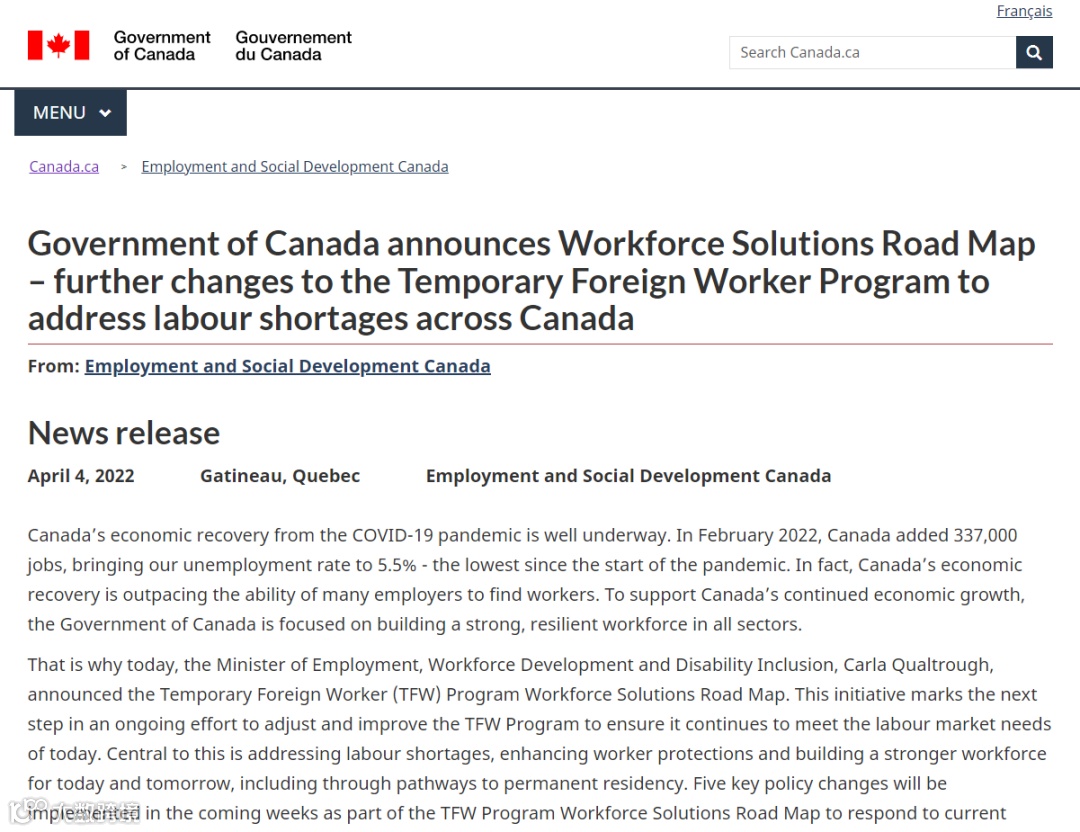 4月初,加拿大政府官宣一系列针对临时海外劳工项目的政策。