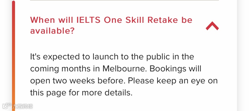 前提条件:你已经在澳大利亚的指定考试中心(目前已知的指定地点是墨尔本IDP考试中心)考过一次雅思全科(A、G类都适用)了,但是你对某科成绩不满意,希望重考。
