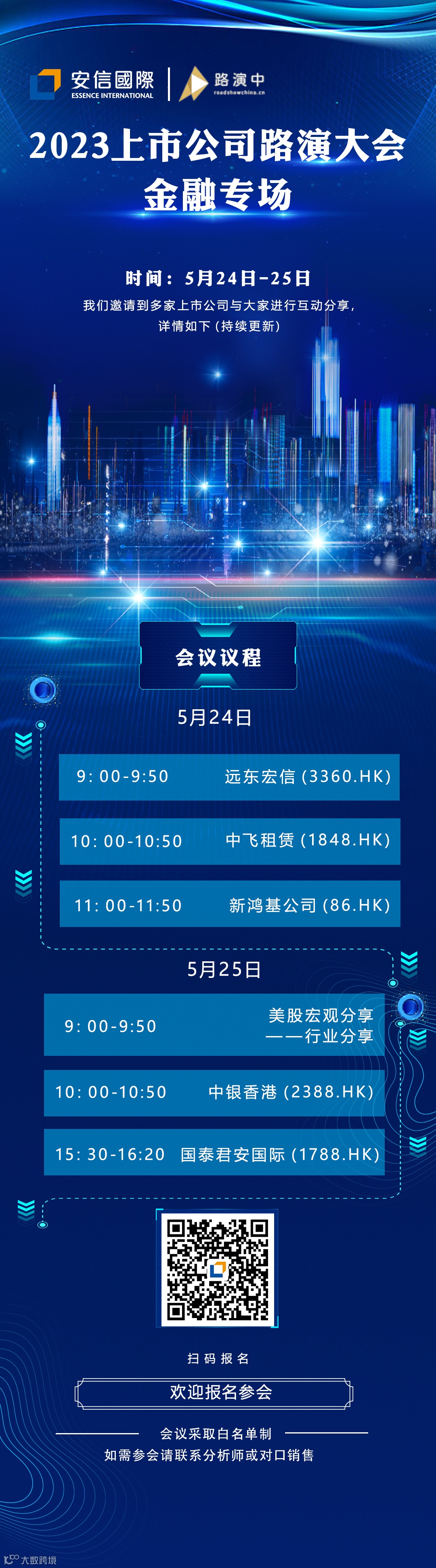 本公众号所有文章、内容均针对具备境外资产、境外交易资格、境外交易实力和境外交易经历的特定对象投资者;不适用并禁止发送给境内普通客户,也不能被视为出售或购买或认购证券的邀请或向任何特定人士作出邀请。公众号文章、内容内所提到的证券可能在某些地区不能出售。安信国际,其母公司或任何其附属公司不会对因使用此公众号内之材料而引致任何人士的直接或间接或相关之损失负上任何责任。