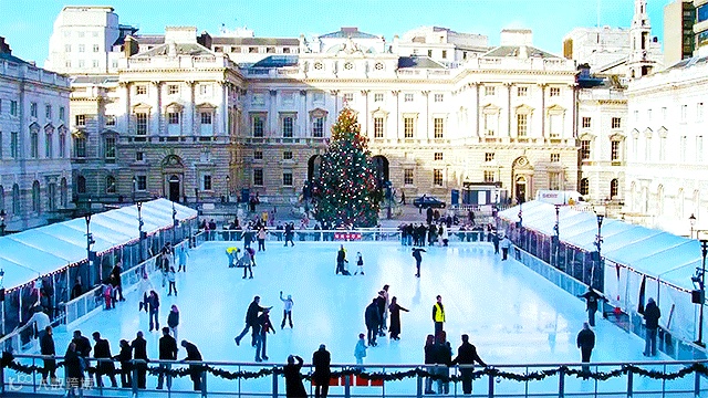 位置跟特拉法加广场只隔了一整条Strand大街的萨默赛特宫,是全伦敦最“市中心”的冰场啦!11月中旬开门迎客,迎接冬日圣诞的到来啦。