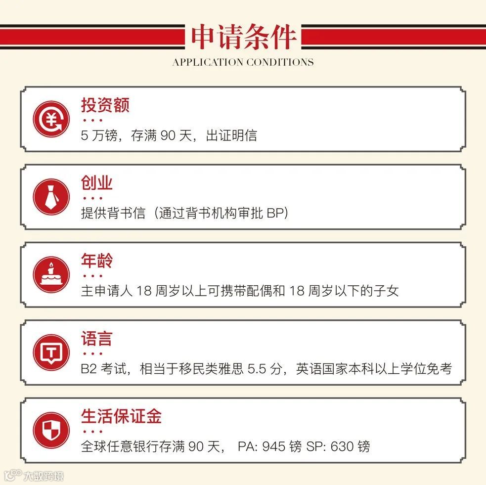 创新签证:适合更有经验的,想在英国创业的商人,申请人必须有至少5万英镑可用于创业投资。(比如大部分有资深经验的中国地区投资者)